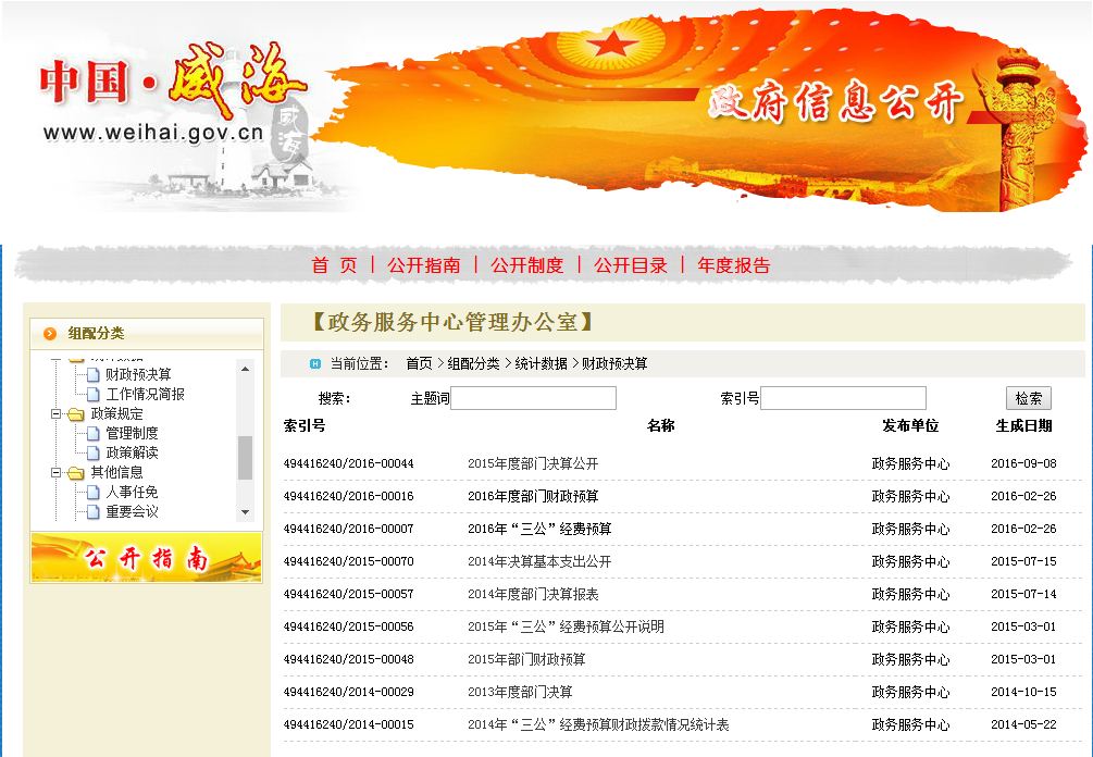 中心年度财政预决算、“三公”经费公开网页