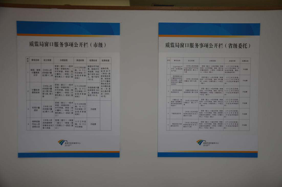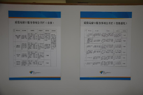 中心办事窗口事项公开栏