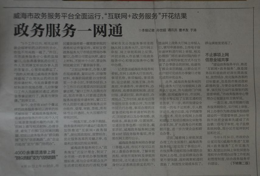 (三)及时做好解读和回应工作。2016年,结合建设全市统一政务服务平台、推进“互联网+政务服务”工作、建立事项信息库等重点工作,及时通过报纸、杂志、新闻网站、电视媒体以及印发配套文件等多种渠道向社会公开发布信息,及时通过中心网站主任信箱回应社会关注。