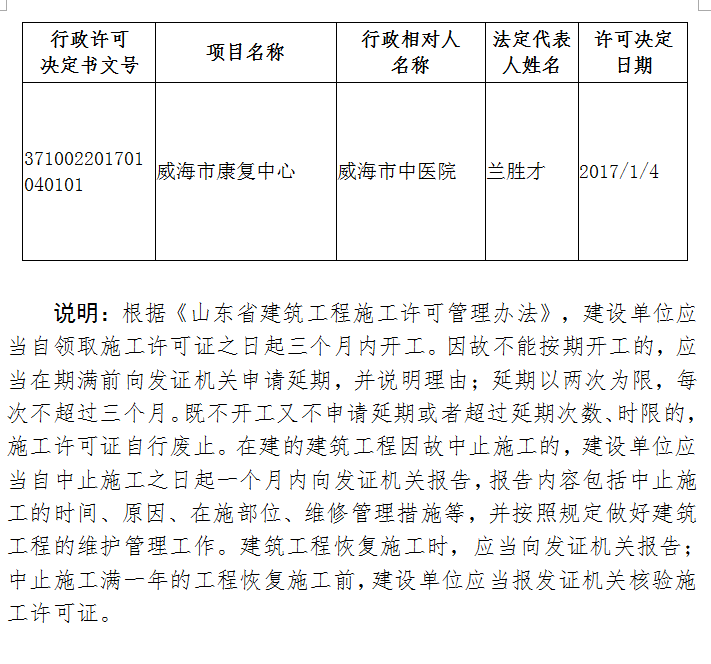 十大网赌靠谱网址平台 施工许可审批结果 十大网赌靠谱网址平台中医院康复中心项目施工许可信息