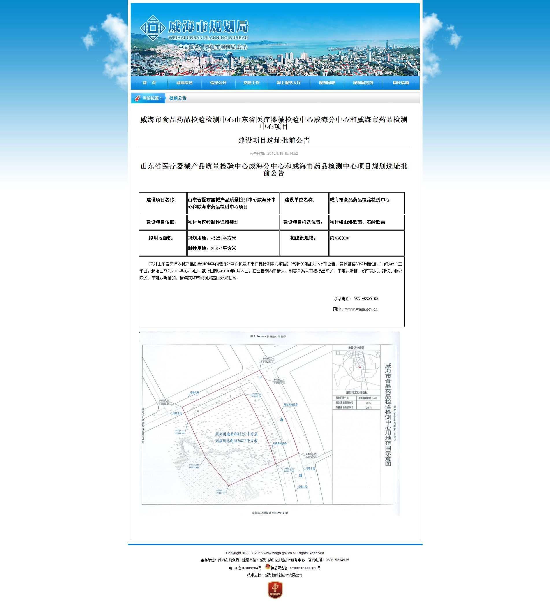 十大网赌靠谱网址 建设项目选址意见审批结果 山东省医疗器械产品质量检验中心网上十大正规赌网址大全官网分中心和网上十大正规赌网址大全官网药品检验中心(一期)建设项目选址意见批前公告和批后公布