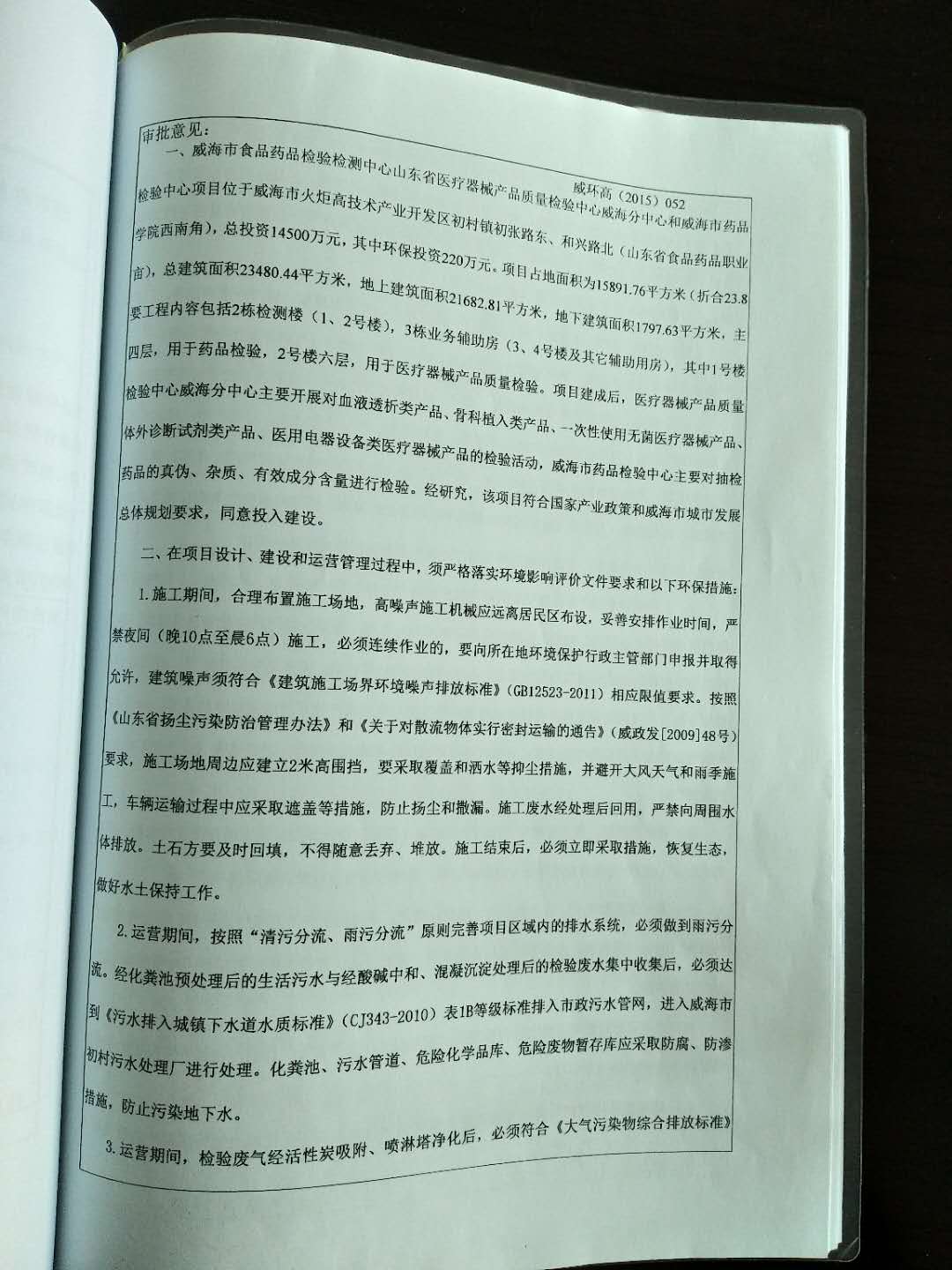 山东省医疗器械产品质量检验中心十大网赌靠谱网址分中心和十大网赌靠谱网址药品检测中心(一期)项目环评审批