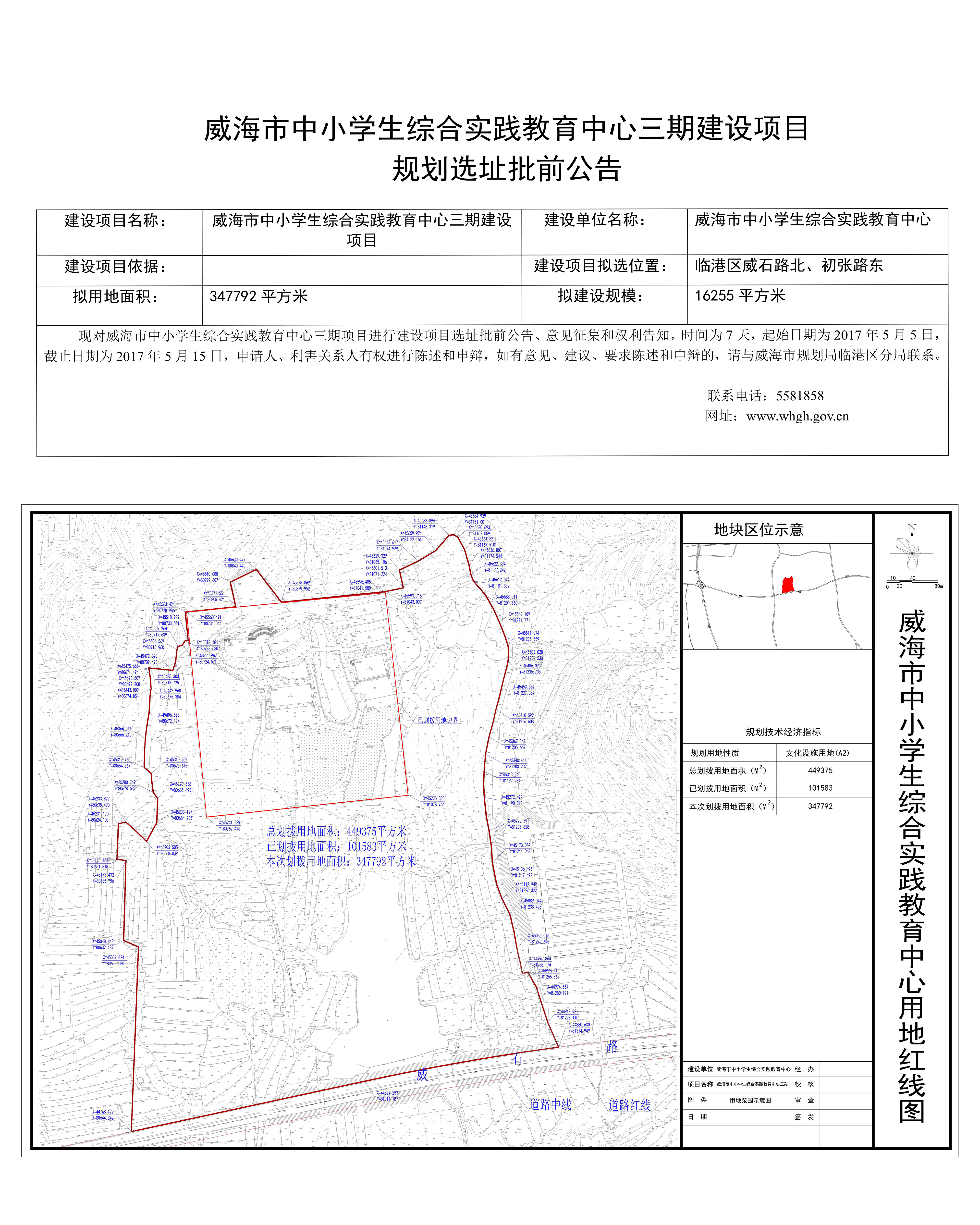 网上十大正规赌网址大全官网中小学生综合实践教育中心三期建设项目规划选址批前公告