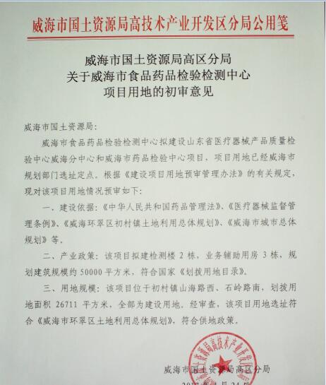 十大网赌靠谱网址国土资源局高区分局关于十大网赌靠谱网址食品药品检验检测中心项目用地的初审意见