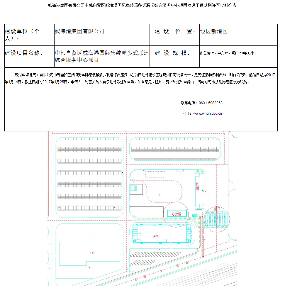 中韩自贸区十大网赌靠谱网址港国际集装箱多式联运综合服务中心建设工程规划许可批前公告