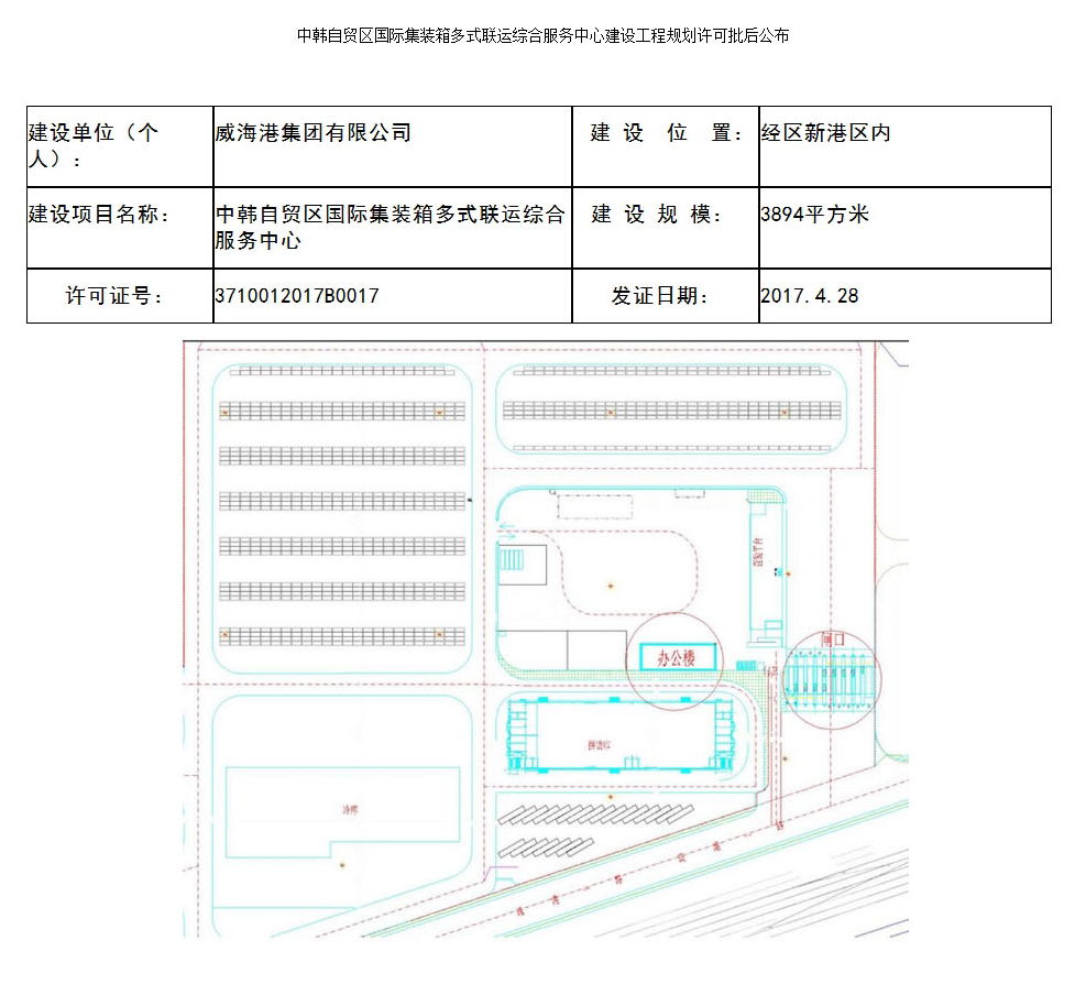 十大网赌靠谱网址平台 建设工程规划许可审批结果 中韩自贸区网上十大正规赌网址大全官网港国际集装箱多式联运综合服务中心项目建设工程规划许可批后公布