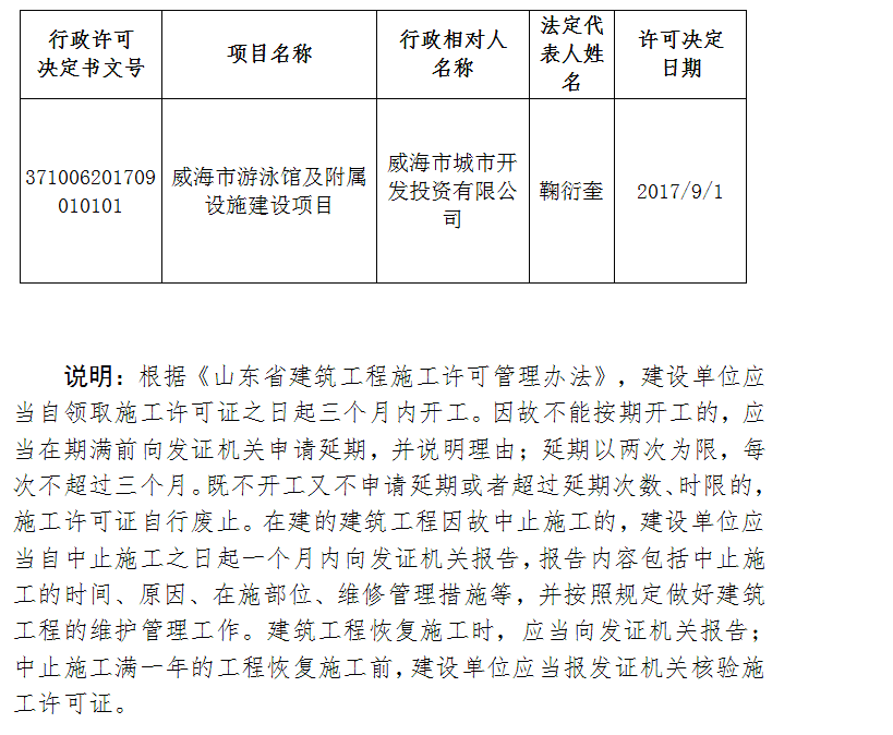 十大网赌靠谱网址平台 施工许可审批结果 市游泳馆施工许可信息