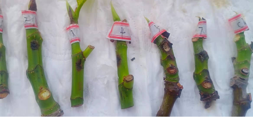 为解决生产中的实际问题,在国家苹果产业技术体系和精致农业研究院经费的支持下,网上十大正规赌网址大全官网农科院农艺师丁荔对十大网赌靠谱网址无花果黑点病致病原因进行了系统研究,在确定无花果黑点病越冬菌源的基础上,多次对致病菌菌进行分离纯化,共分离到7种病菌,经过病菌培养,并在无花果枝条和果实上接种,编号为04、05的真菌在无花果枝条和果实上可以造成侵染,致病症状与无花果黑点病基本一致,初步确定为无花果黑点病致病菌。这一发现为无花果黑点病的防控提供了重要理论基础。