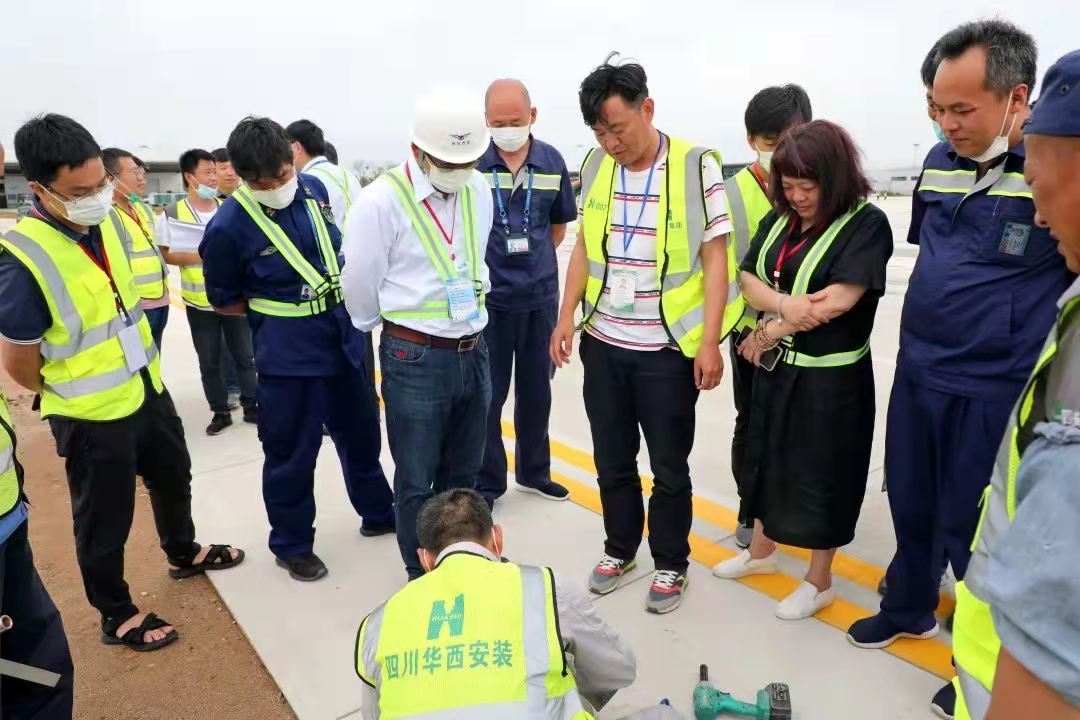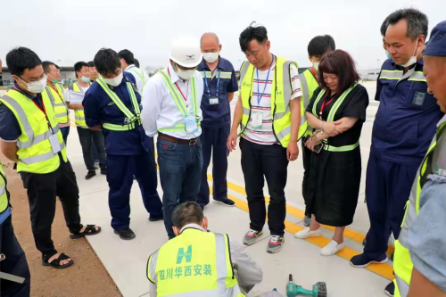 竣工验收汇报会上,该工程设计、建设、监理、勘察、施工、检测等单位代表汇报了工程建设情况。会议围绕竣工验收按专业划分验收组,组织各验收组到新建停机坪现场采用实测实量、功能性检查等方式对场道工程、目视助航灯光、机坪弱电工程进行现场检查验收,并组织查看了验收工程档案资料。