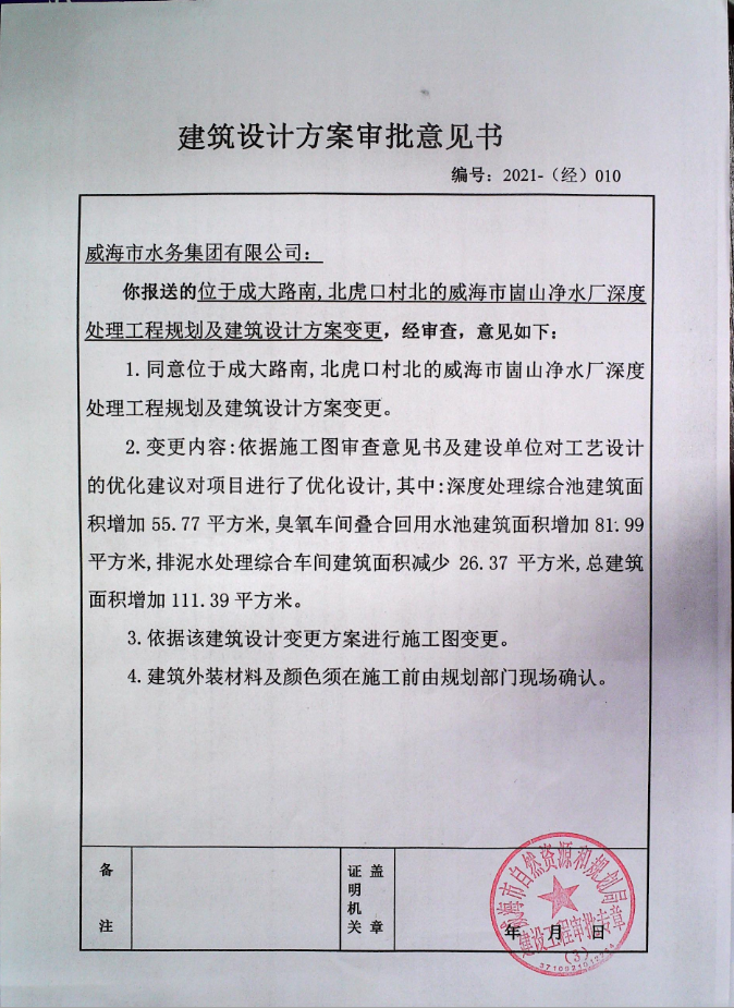 十大网赌靠谱网址 设计审批结果 崮山净水厂深度处理工程设计审批公示