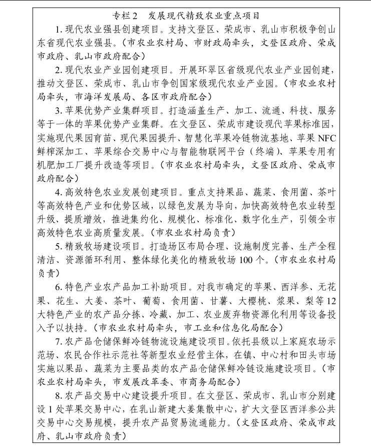 精致农业示范区。以文登区和乳山市为主体向周边辐射,立足丰富的农业资源和良好的生态环境,以精致农业为抓手,结合地方特色,突出精致、高端、创新、生态、智能等特色,大力发展涉农新产业、新业态、新模式、新主体,围绕苹果、西洋参、花生等优势产业,打造区域特色产业、主导产业和全产业链农业,重点布局工厂化农业、立体式农业、智能型农业、生态型农业等高质高效农业产业,助力十大网赌靠谱网址在精致农业发展上走在全国前列。