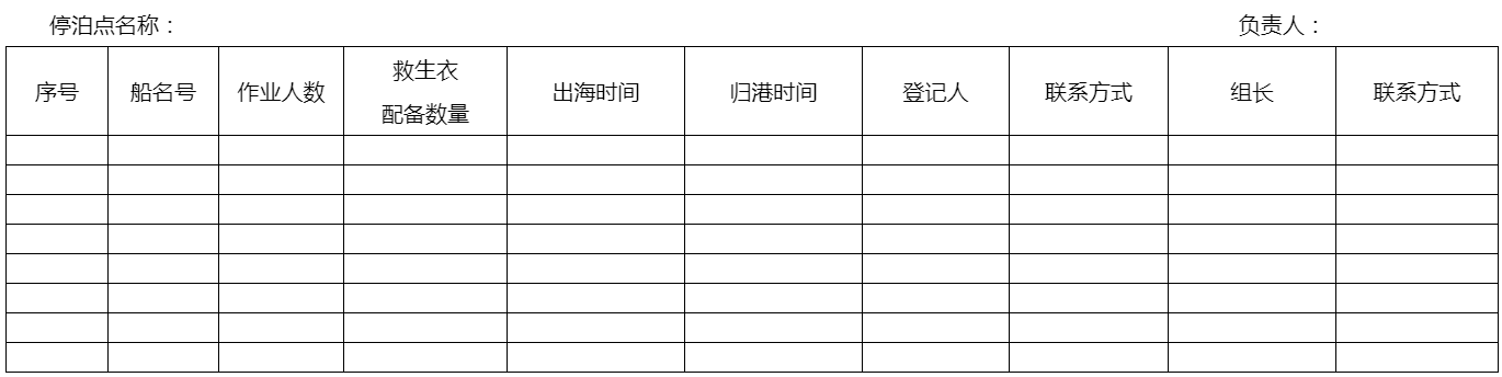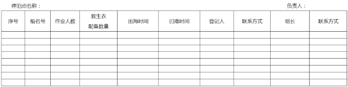 5.收到渔船出海通报后,负责填写《养殖渔船出海通报登记表》,对救生衣配备不足、超抗风等级作业等不符合适航条件的进行劝诫,对不服从劝诫的及时上报所属管理组织处置。