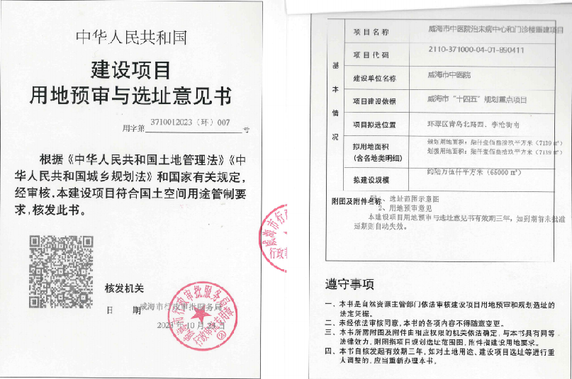 十大网赌靠谱网址平台中医院治未病中心和门诊楼重建建设项目用地预审与选址意见书
