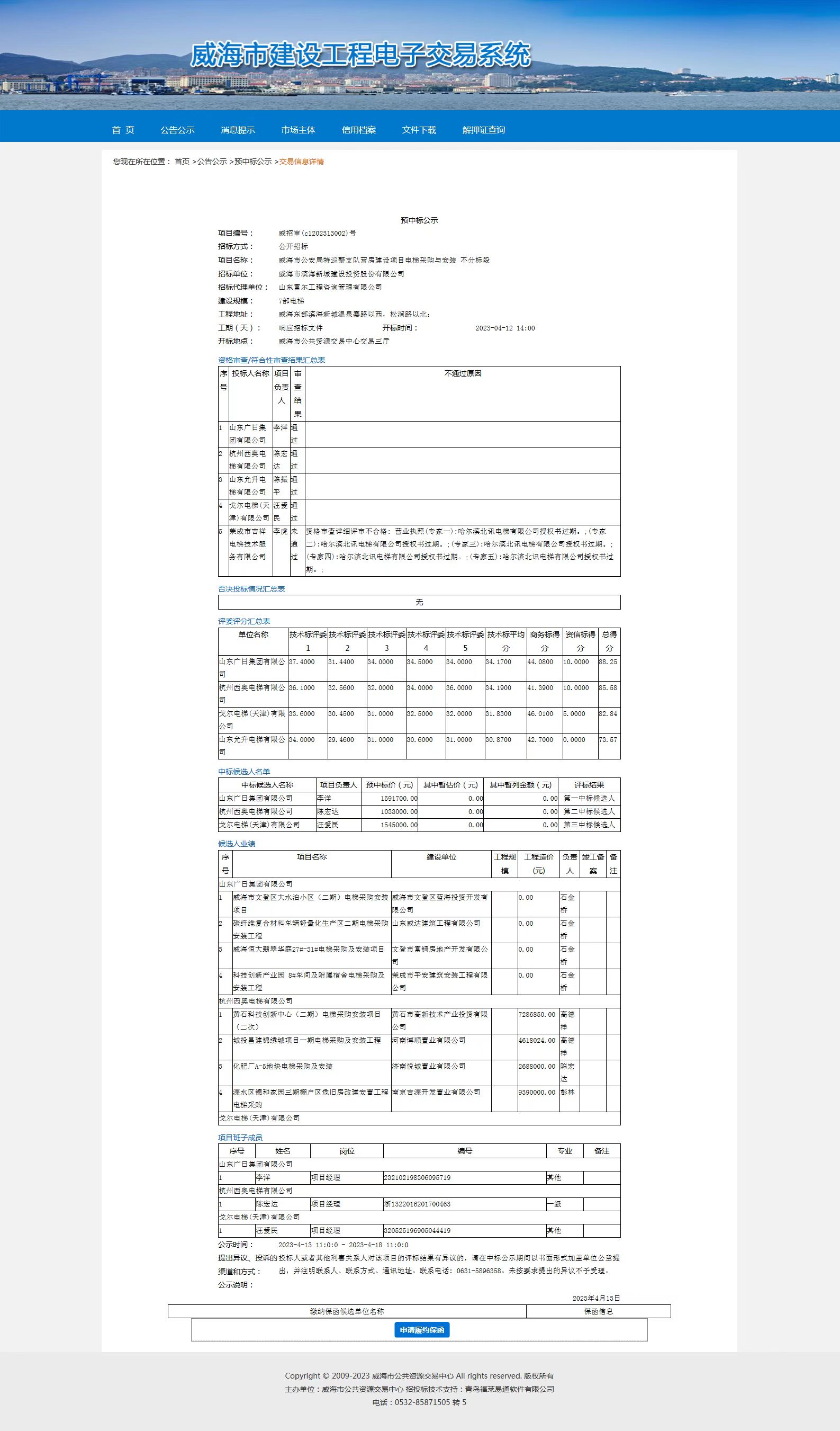 十大网赌靠谱网址平台 招标投标 十大网赌靠谱网址平台公安局特巡警支队营房建设项目电梯采购与安装预中标公示
