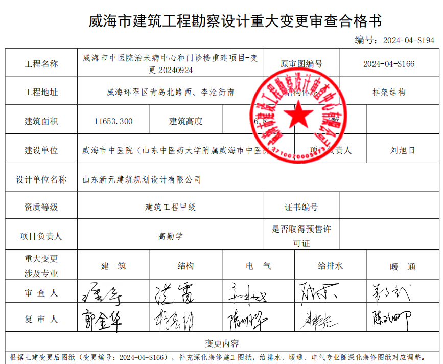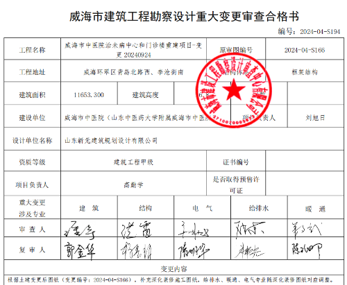 十大网赌靠谱网址 重大设计变更 建筑工程勘察设计重大变更审查合格书