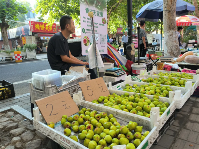 摊主赵女士一边称重一边介绍:“九月十月无花果正甜,阳光玫瑰和巨峰葡萄也卖得特别火。”