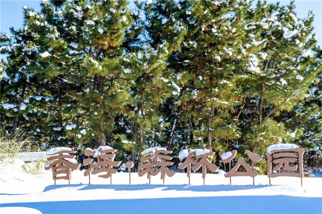 而那香海邀请你,在雪停时走进这处秘境,小路两旁的雪如同蛋糕上的奶油,将松林变成“甜蜜”的海洋,摇摆的松枝随机落下大大小小的雪团,簌簌的响声与融雪滴答,还有人们锻炼的脚步、鸟儿的啼鸣,衬托着雪后初霁的静谧。