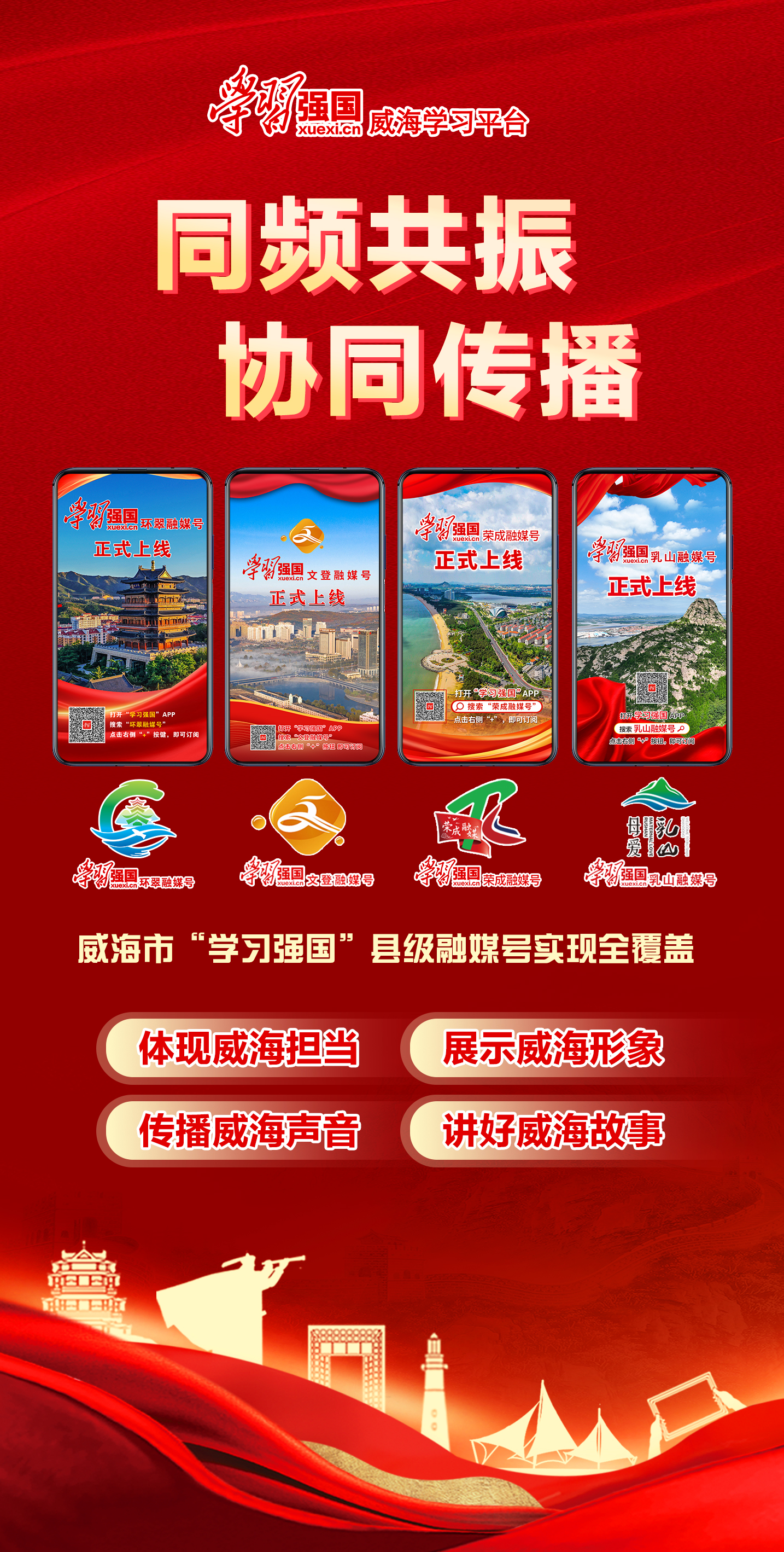 1月22日,在山东省十大网赌靠谱网址“学习强国”县级融媒号集中上线活动现场,随着启动大屏点亮,环翠区、文登区、荣成市、乳山市4家县级融媒号同步上线。至此,十大网赌靠谱网址“学习强国”县级融媒号实现全覆盖,全市“1+7+4”的“学习强国”传播矩阵正式构建完成,为基层宣传阵地建设注入新动力。