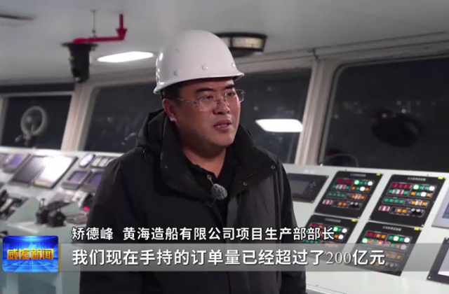 黄海造船有限公司项目生产部部长矫德峰说,现在手持的订单量已经超过了200亿元,按艘数算,也就100多条船了。
