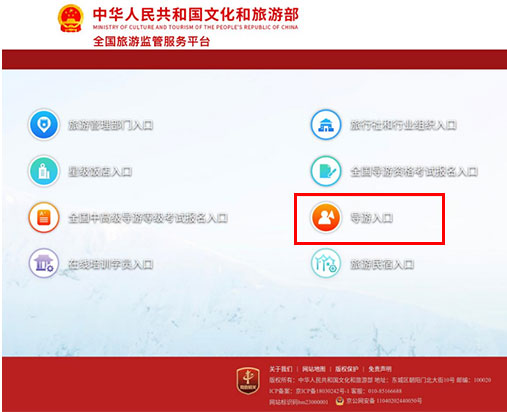 1访问“全国旅游监管服务平台” 由“导游入口”进入。