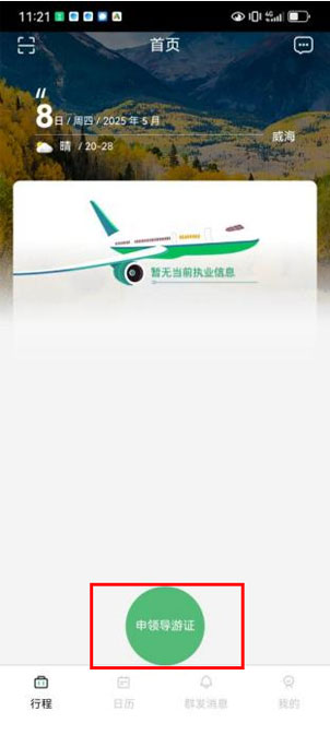 2注册完成,点击申请导游证。