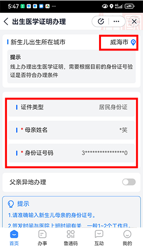 *通过“爱山东” APP在线办理(仅限新生儿出生不超过三个月)
