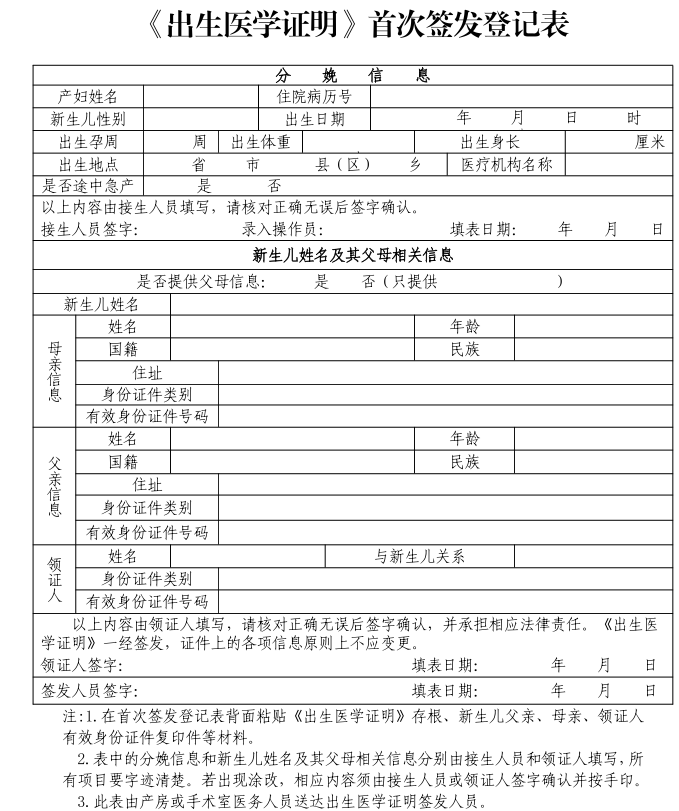 首次签发指签发机构第一次为新生儿出具出生医学证明