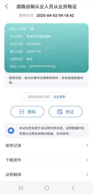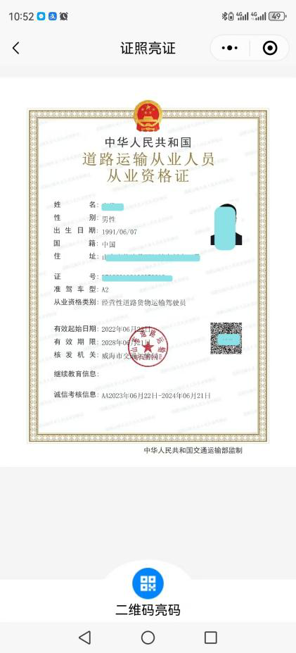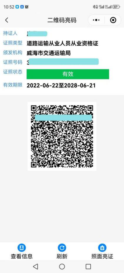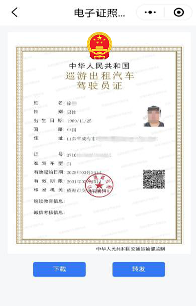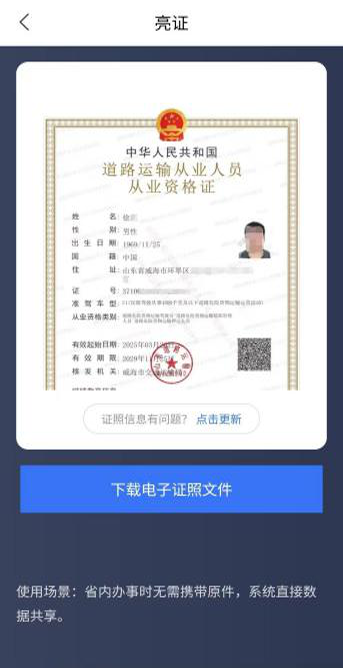 “全国道路运输电子证照”微信小程序中展示的电子证照在全国范围内互信互认。