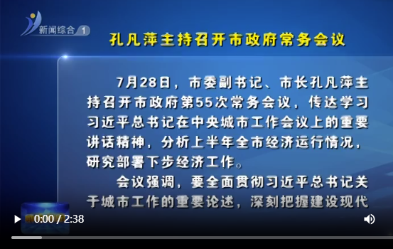 7月28日,市委副书记、市长孔凡萍主持召开市政府第55次常务会议,传达学习习近平总书记在中央城市工作会议上的重要讲话精神,分析上半年全市经济运行情况,研究部署下步经济工作。会议强调,要全面贯彻习近平总...