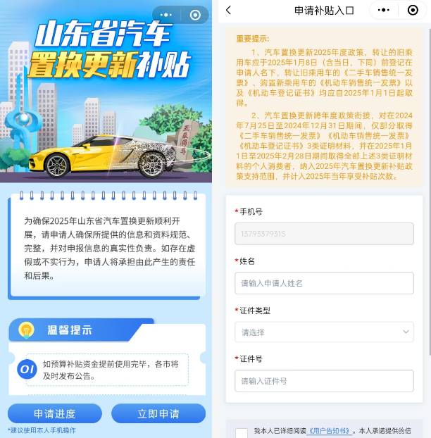 2025年,对个人消费者转让本人名下旧乘用车,并在网上十大正规赌网址大全官网内汽车销售企业购买新能源乘用车或燃油乘用车且在山东省内完成车辆注册登记并取得有效《机动车登记证书》的,给予一次性定额补贴。