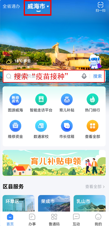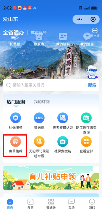 2.在“爱山东”首页的“热门服务”中点击“疫苗接种”,选择“网上十大正规赌网址大全官网”,进入“疫苗接种”导航页