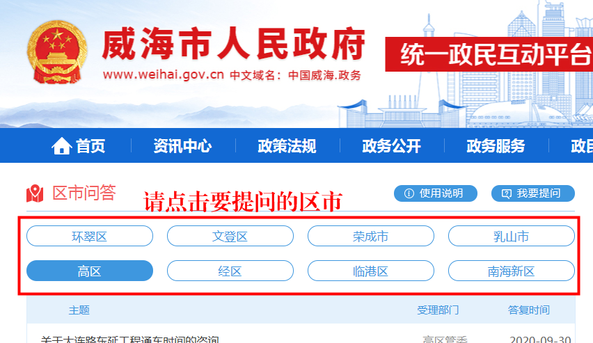 访问途径:十大网赌靠谱网址官网→政民互动→区市问答