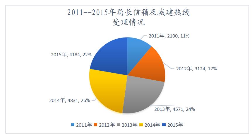 2015年,因政府信息公开共收到行政复议1件、行政诉讼4件,维持具体行政行为或者驳回原告诉讼请求数4件,没有被举报投诉案件。市住房和城乡建设局“局长信箱”栏目和“城建热线12319”对公众咨询全部予以按时回复,全年共受理和答复各类问题4184人次,其中现场咨询200人次、电话咨询3200人次、网上咨询784人次。