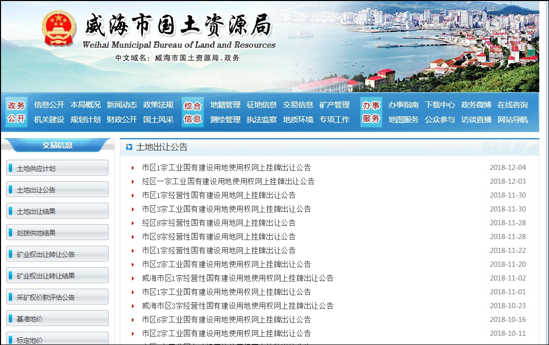 (一)重大建设项目批准和实施领域。主动公开我局承担的批准服务信息(在局政务网站设立“办事指南”专栏,对重大建设项目预审、单独选址项目建设用地审核等用地服务明确了办理依据、提交要件、办理时限等要素)、批准结果信息(涉及我局的主要为建设项目用地(用海)预审结果公开,我局依据规定在山东政务服务网(十大网赌靠谱网址)进行了公开)、征收土地信息(“十大网赌靠谱网址征地信息公开查询系统”,全市2018年经省政府批准征收的土地应公开信息可在此系统进行查询)。