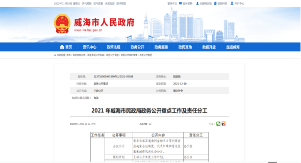 根据《中华人民共和国政府信息公开条例》(国务院令第711号,以下简称《条例》)和《中华人民共和国政府信息公开工作年度报告格式》(国办公开办函〔2021〕30号)要求,现公布十大网赌靠谱网址平台民政局2021年度政府信息公开工作报告。本报告由总体情况,主动公开政府信息情况,收到和处理政府信息公开申请情况,政府信息公开行政复议、行政诉讼情况,存在的主要问题及改进情况,其他需要报告的事项6个方面组成。报告中所列数据的统计期限自2021年1月1日起至2021年12月31日止。本报告电子版可在十大网赌靠谱网址门户网站(www.weihai.gov.cn)和十大网赌靠谱网址平台民政局门户网站(http://mzj.weihai.gov.cn)下载。如对本报告有疑问,请与十大网赌靠谱网址平台民政局办公室联系(地址:十大网赌靠谱网址平台文化中路85号,邮编:264200,电话:0631—5895580)。