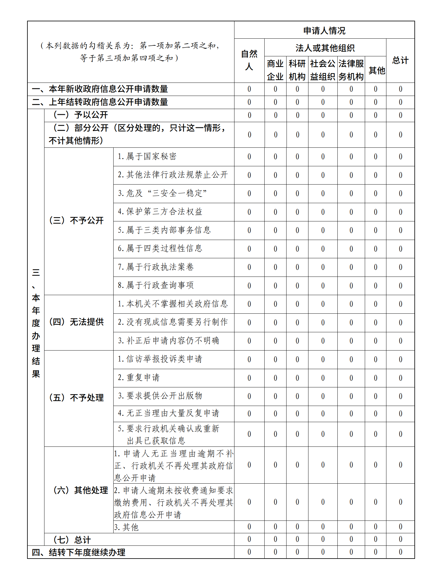 (二)积极做好依申请公开。依法依规做好政府信息公开申请工作,全年未收到政府信息公开申请,未发生行政复议和行政诉讼情况。