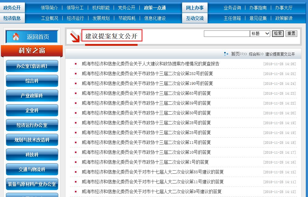 2018年,我局承办人大代表建议3件、政协委员提案10件,人大建议分别是:第9号《关于搭建网上十大正规赌网址大全官网特色企业智慧云服务平台的建议》、第11号《关于鼓励企业加大技改投入的建议》、第85号《关于与国内大型互联网平台共同打造“网上十大正规赌网址大全官网联合创新中心”的建议》,政协提案分别是:第1号《关于加快我市环保产业发展的建议》、第10号《关于我市中小企业发展高端智能装备制造的建议》、第11号《关于加速发展我市海洋无人系统相关产业的建议》、第25号《关于与国内大型互联网平台共建联合创新中心的建议》、第28号《关于实施智能制造工程,促进我市产业加快转型升级的建议》、第50号《关于加快推进水产品加工业发展的建议》、第59号《实施智能制造工程,促进我市产业加快转型升级》、第63号《关于加快牡蛎壳开发利用的几点建议》、第190号《关于强化2018年度网上十大正规赌网址大全官网海藻加工用盐供应和质量安全监管的建议》、第252号《关于建立企业破产重整重组管理人市场机制的建议》,这些建议提案的内容与我市工业经济发展和信息化建设密切相关,具有很强的现实性、针对性和指导性。领回承办任务后,我局在对每一项提案进行认真学习和研究的基础上,按照“主要领导挂帅,分管领导具体负责,综合科协调办理,有关科室和单位分工负责”的原则,认真进行研究,及时做出答复。建议提案办结后,我们对人大代表和政协委员进行回访,虚心征求他们的意见和建议。对人大代表政协委员反馈的意见和建议,进行了认真研究,积极采纳,抓好落实,对改进工作、推动发展发挥了重要作用。我局在首页下端设了并按照政府信息公开工作要求向社会公众公开建议提案答复文件全文。