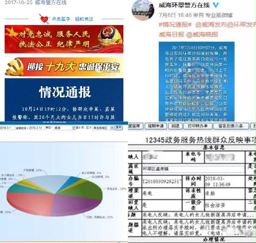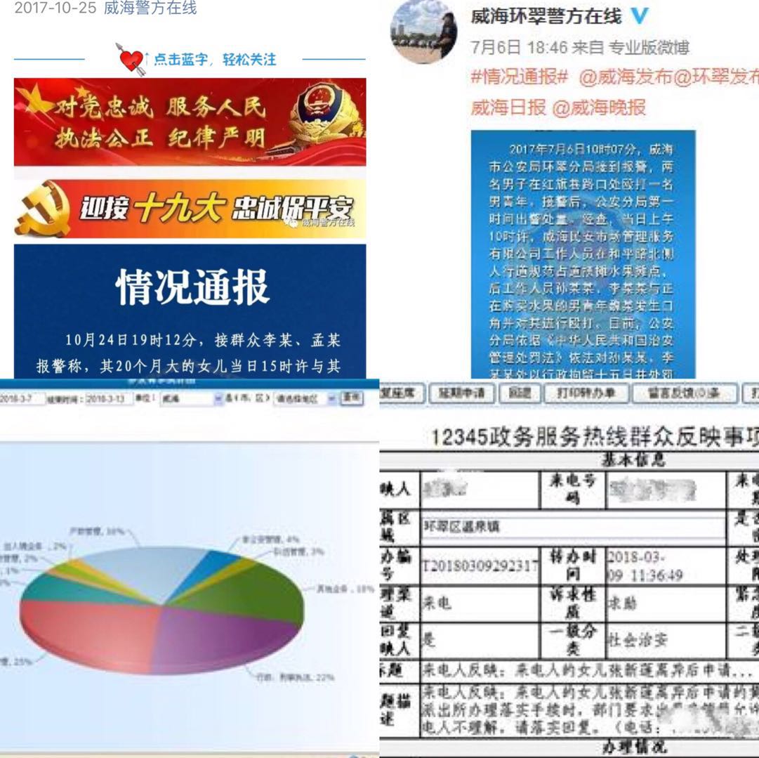 (三)积极回应社会关切、主动公开舆情信息,由舆情引发的连锁效应大幅度降低。2017年,通过政务微博、微信及媒体等渠道先后对“城管打人”事件舆情、女孩失踪舆情等进行即时回应,公布事件真相,澄清不实传闻;通过十大网赌靠谱网址公安局智慧网站、政务微博、政务微信、9600110民生警务热线及12345热线、市长热线信箱等渠道与公众进行互动交流,全年共进行交流互动6890人次。