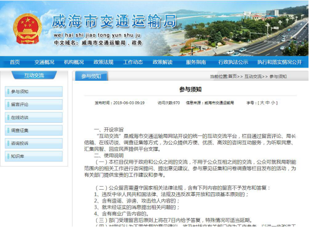 2019年我局充分利用网站、报刊、广播、电视、电子信息屏等媒体实施信息公开,认真处理通过信件、传真、电话、门户网局长信箱等方式收到的群众的各类咨询投诉问题。2019年7月18日,客运科科长孙俊生、公路科有关负责人王海桥在“十大网赌靠谱网址平台发布”微访谈栏目,就“为民办实事”等相关问题与网友在线交流,回答网友提出11条问题。2019年10月11日,公路科科长张峻峣、齐鲁交通十大网赌靠谱网址平台公司ETC客服中心办公室主任宋威萱将做客“学理论,懂政策,做明白人”微访谈栏目,就“ETC和四好农村路”的相关问题与网友在线交流,回答网友提出10条问题。