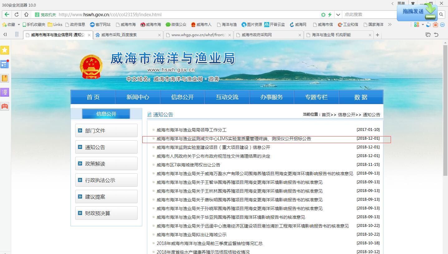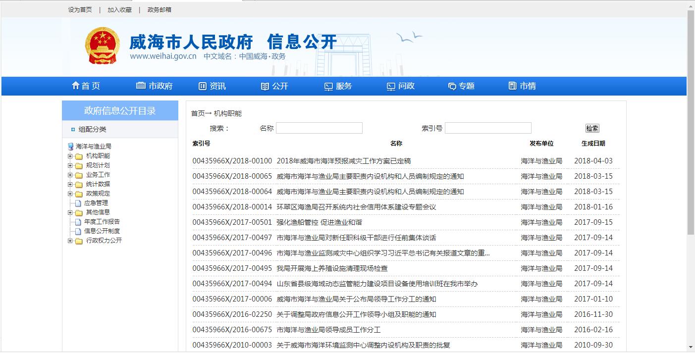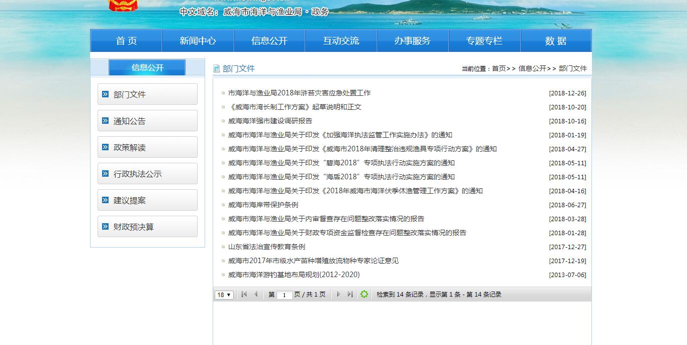 (一)信息公开平台建设情况。目前,我局自有政府信息公开平台主要有:十大网赌靠谱网址政府门户网站中十大网赌靠谱网址海洋与渔业局栏目;十大网赌靠谱网址海洋发展局网站(设有首页、新闻中心、信息公开、互动交流、办事服务、十大网赌靠谱网址、数据等7个主要栏目,微信微博、党建在线、政府信息公开等9个信息公开栏目)。此外,我局还与《中国海洋报》、《中国渔业报》、《中国海洋在线》及本地主流媒体保持长期密切合作关系,全面宣传报道我市先进经验做法和发展现状,助推全省全国海洋与渔业经济持续健康发展。相关信息可登陆http://hyyy.weihai.gov.cn/查询。