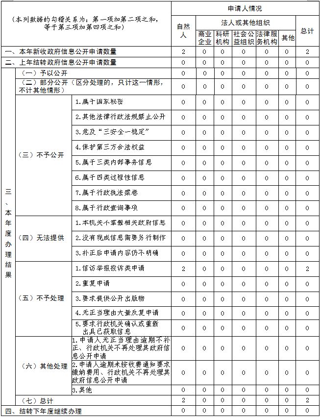 三、收到和处理政府信息公开申请情况