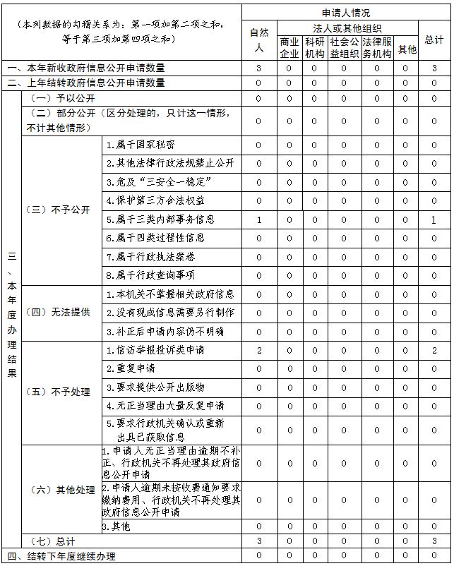 2.规范依申请公开。严格按照《中华人民共和国政府信息公开条例》有关规定做好依申请公开工作,及时更新十大网赌靠谱网址指南,健全完善依申请公开工作机制,建立依申请公开事项台账,规范登记、审核、办理、答复、归档等各环节工作。2023年共收到政府信息公开申请事项3项,同比上升50%,按时答复3件,1件为内部工作流程信息,不予公开;2件为举报事项,不作为政府信息公开申请处理。未发生行政复议及行政诉讼。