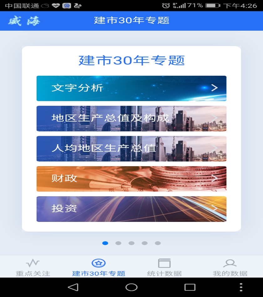 (三)2017年两会期间创新推出了“数据网上十大正规赌网址大全官网-掌上市情推送系统”,实现了数据的主动推送和定制服务,受到市委政府的高度肯定,在今年建市三十周年之际,推出了“建市三十年”专题栏目。